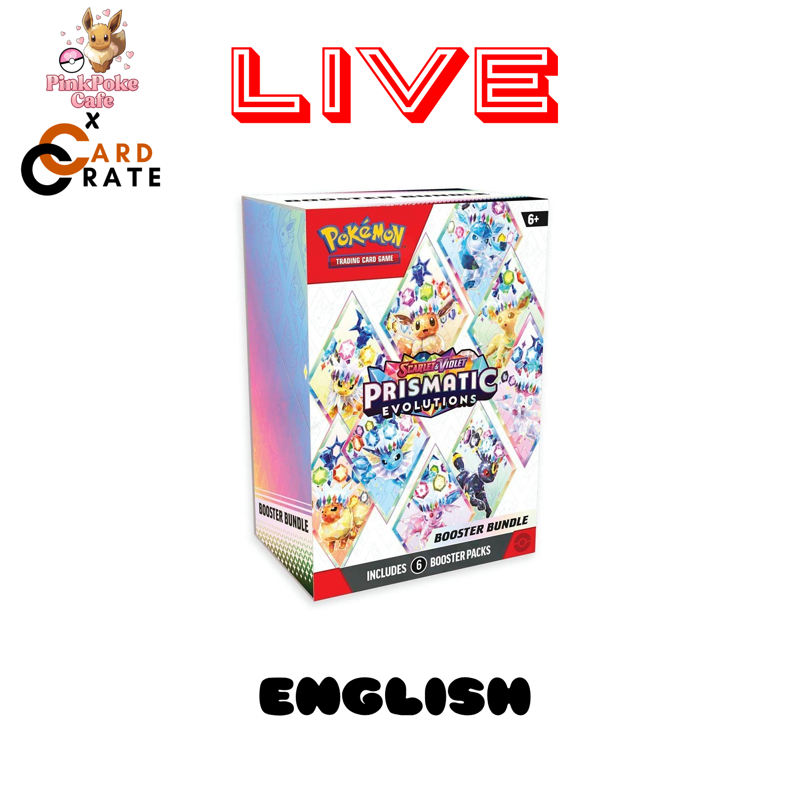 Pokemon Prismatic Evolutions Booster Bundles (LIVE), contains 6 booster packs.